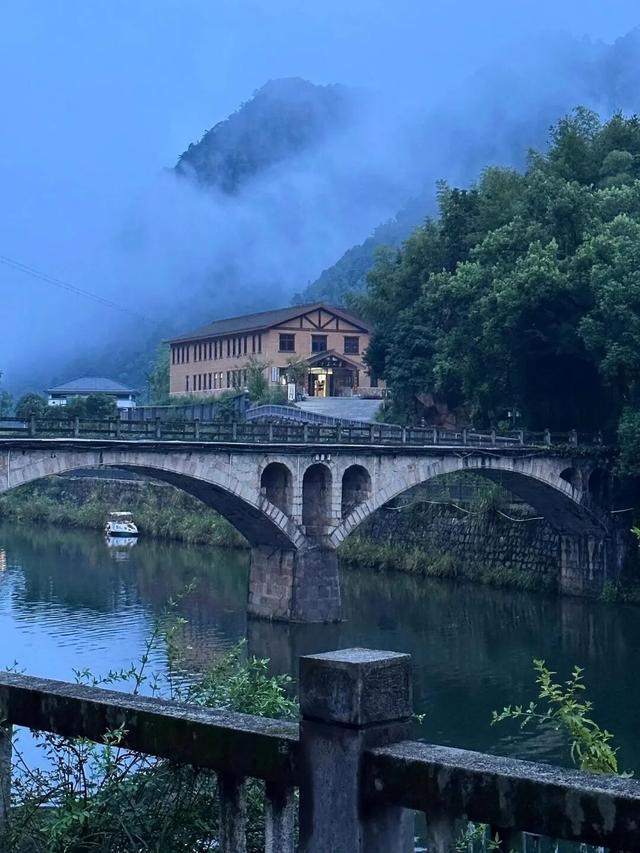 隐于深山中的小村落,一条小溪穿村而过,潺潺流水声为村庄增添了几分灵动。沿着村口的廊桥散步,目之所及都是徽派古村落和延绵的青山,有一种置身画中的错觉,仿佛时间都在此刻静止。