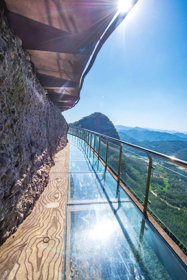 这里还建有玻璃桥栈道,悬空而建,胆子小的走过去腿得抖三抖。