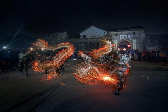 香火龙,元宵节前后,村民舞动着如龙的扎制品,在夜光中尽情舞动……